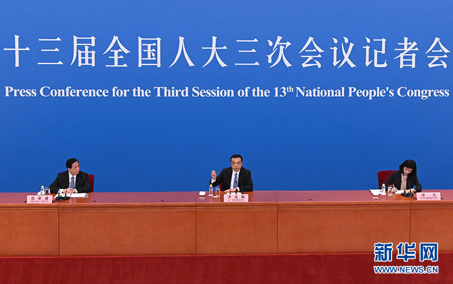 5月28日下午,十三届全国人大三次会议在北京人民大会堂举行记者会,国务院总理李克强应大会发言人张业遂的邀请出席记者会,并回答中外记者提问。 新华社记者 陈晔华 摄