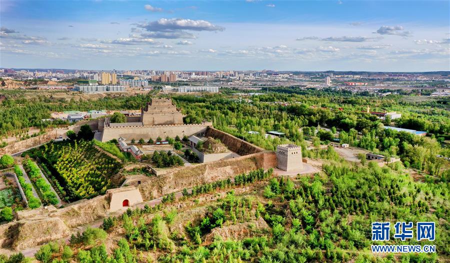 5月24日拍摄的树林环绕的榆林市镇北台(无人机照片)。 2017年4月起,地处毛乌素沙漠南缘的陕西省榆林市开展主城区百万亩生态圈及环城防护林带建设,对荒山荒地荒沙、撂荒地、不宜耕作土地、闲置土地进行造林绿化,对低效林地进行提升改造。2019年11月,榆林市被授予“国家森林城市”称号。昔日区域内的裸露土地全面绿化,城市及周围处处绿树成荫,呈现出一派“塞上森林城”的美景。新华社记者 陶明 摄