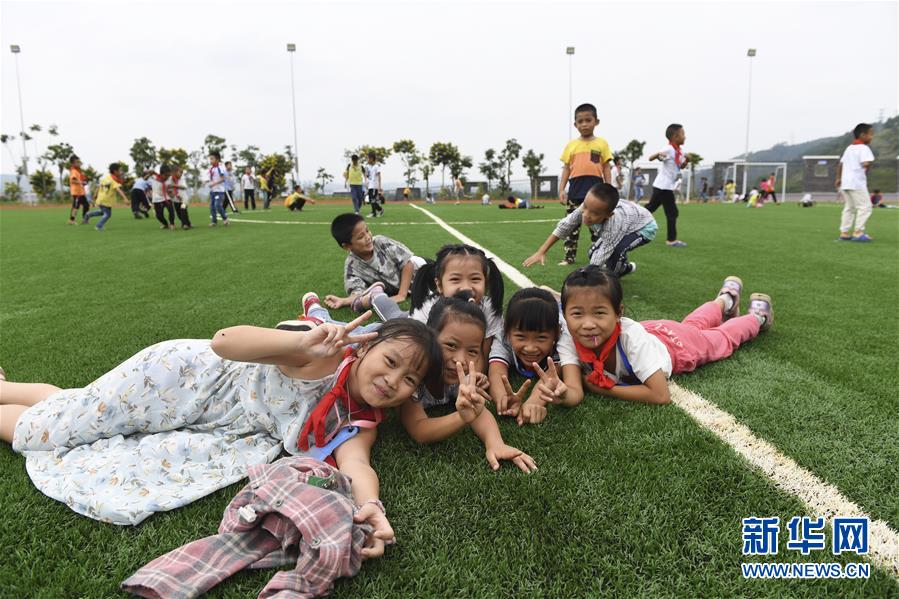 广西隆安县粤桂小学的学生在操场上玩耍(2019年10月16日摄)。 新华社记者 曹祎铭 摄 |