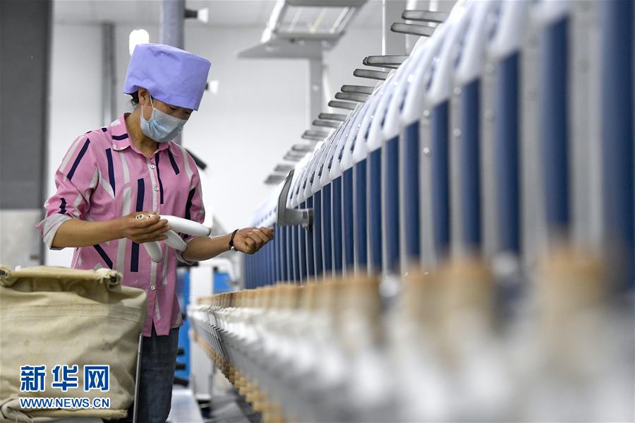 在宁夏吴忠市红寺堡区现代纺织产业园内,工人在生产线上忙碌(6月7日摄)。 近年来,宁夏吴忠市红寺堡区大力发展产业扶贫,吸引企业投资建厂,帮助农民实现家门口就业。在红寺堡区现代纺织产业园内,一期投产的项目已在当地招工560人,其中建档立卡贫困户215人,项目三期全部投产后用工规模将达到2200人,人均月收入可达3000元左右。 新华社记者 冯开华 摄