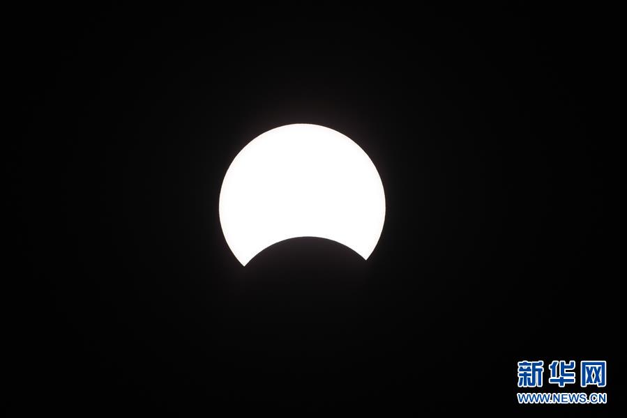 这是6月21日15时06分在北京拍摄的日食。 “日环食”天文景观于6月21日“夏至日”下午在天宇上演。 新华社记者 鞠焕宗摄