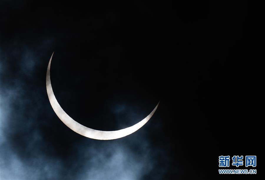在拉萨观赏到的日食(6月21日摄)。 “日环食”天文景观于6月21日“夏至日”下午在天宇上演。 新华社记者 普布扎西摄