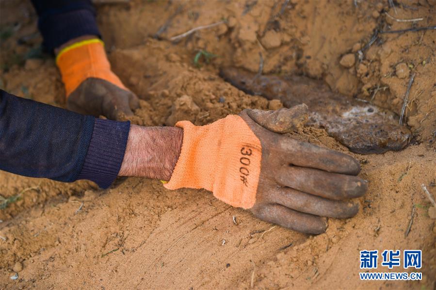 7月7日,孟和巴依尔在种锁阳籽。新华社记者 连振 摄