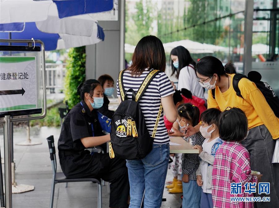 7月15日,在上海自然博物馆入口,工作人员对入馆观众进行健康登记。 进入暑假,不少家长带着孩子到上海自然博物馆参观。该展馆采取实名制分时段购票参观、参观人数分时限流、发布次日参观人数预测等举措,加强防疫常态化管理。 新华社记者 刘颖 摄