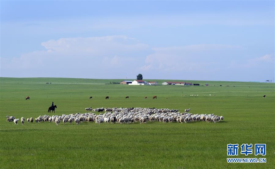 内蒙古锡林郭勒盟乌拉盖管理区的草原景色(7月2日摄)。 夏日,内蒙古广袤的大草原碧草连天,美景如画。 新华社记者 贾立君 摄