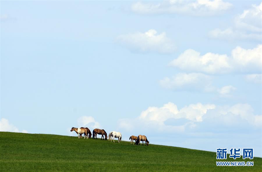 内蒙古锡林郭勒盟西乌珠穆沁旗境内的草原景色(6月28日摄)。 夏日,内蒙古广袤的大草原碧草连天,美景如画。 新华社记者 贾立君 摄