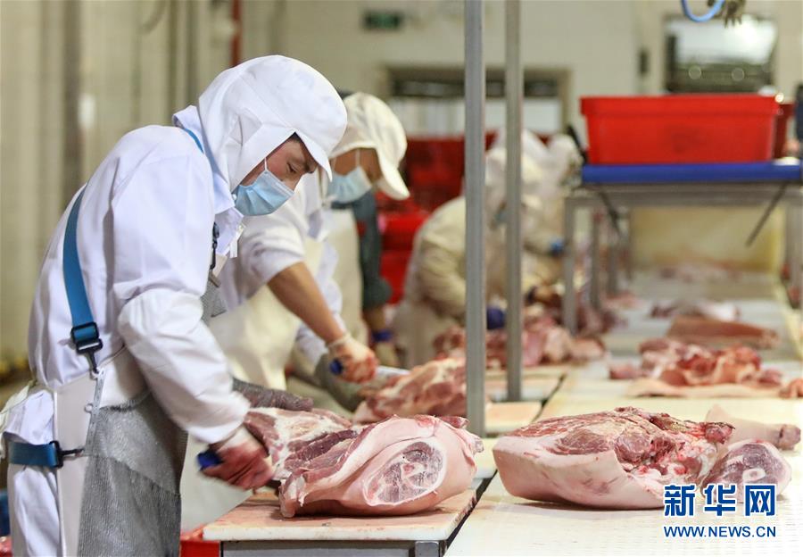 7月15日,北京二商肉类食品集团有限公司员工在肉类分割流水线上工作。 北京二商肉类食品集团有限公司是保障北京肉类市场供应的主要企业之一。新冠肺炎疫情以来,企业严格实施北京市、农业农村部和中国肉类协会的防疫要求,对进入厂区的人员、车辆以及原料采购、屠宰分割、产品加工、贮藏运输、废弃物收集及污水处理等生产环节严格防疫,强调源头把关彻底消毒。目前,集团公司下属多家生猪屠宰加工基地正常运营,保质保量供应北京市场需求。 新华社记者 李欣 摄