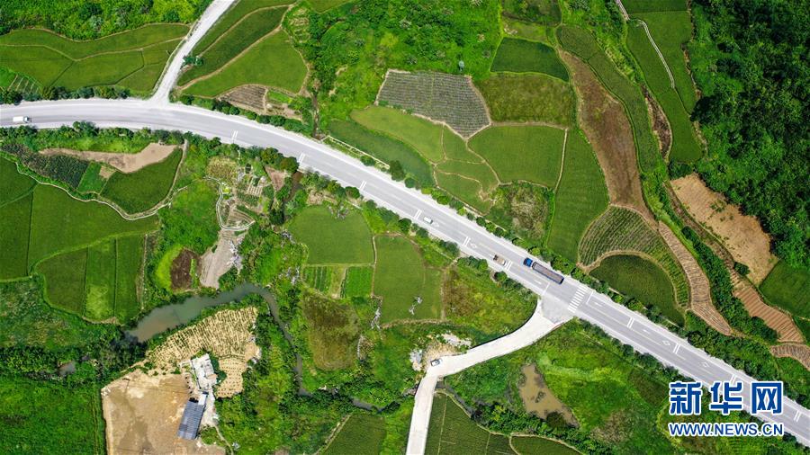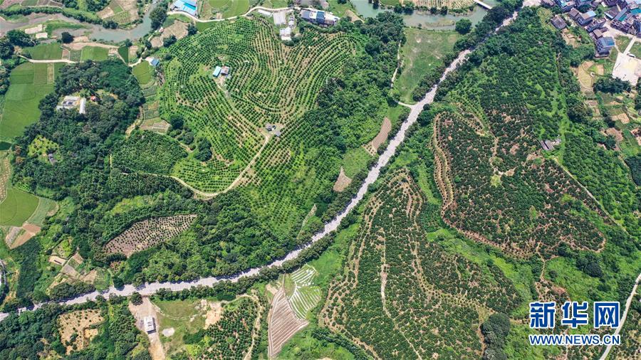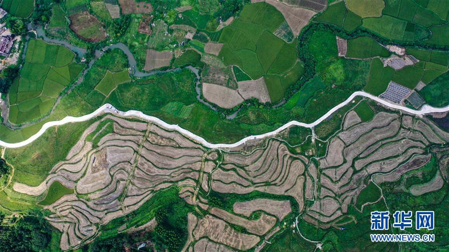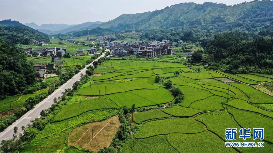 融安县浮石镇泉头村的田园景色(7月15日摄,无人机照片)。 夏日时节,广西柳州市融安县阡陌纵横的田园绿意盎然,处处充满生机和活力。 新华社记者张爱林摄