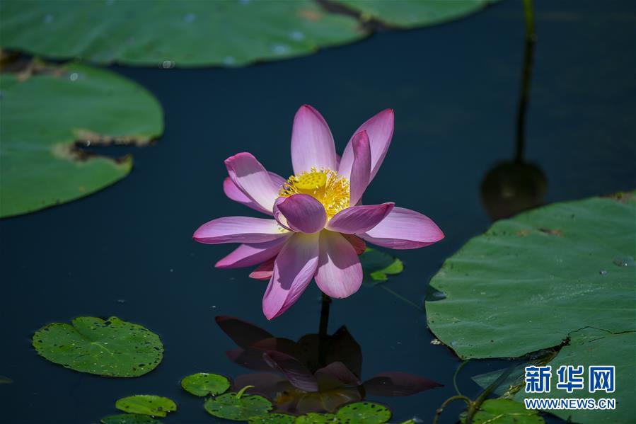 这是在长春南湖公园拍摄的荷花(7月16日摄)。 近日,吉林长春南湖公园荷花进入盛花期,吸引众多市民和游客前来观赏。 新华社记者 张楠 摄