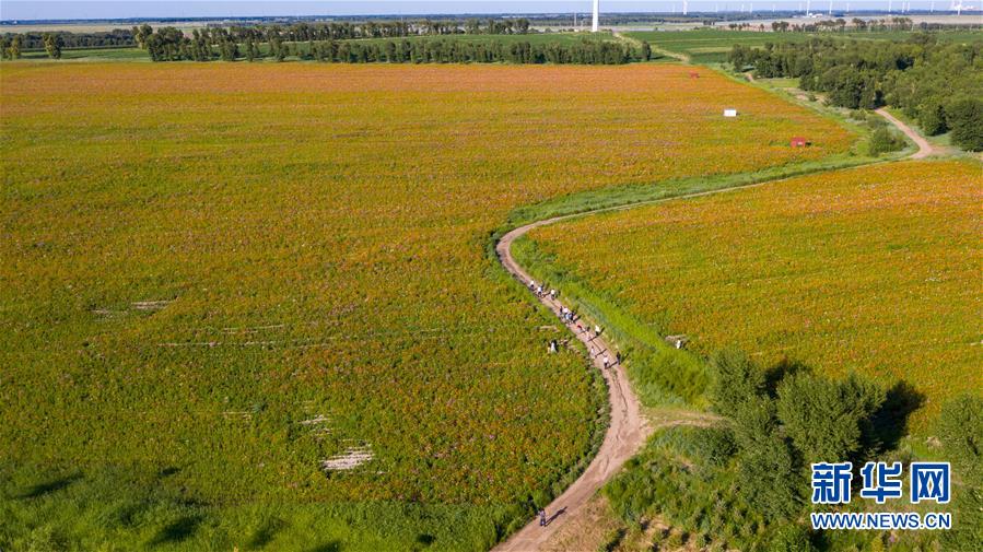 这是查干湖花海景区(7月20日摄,无人机照片)。新华社记者 张楠 摄