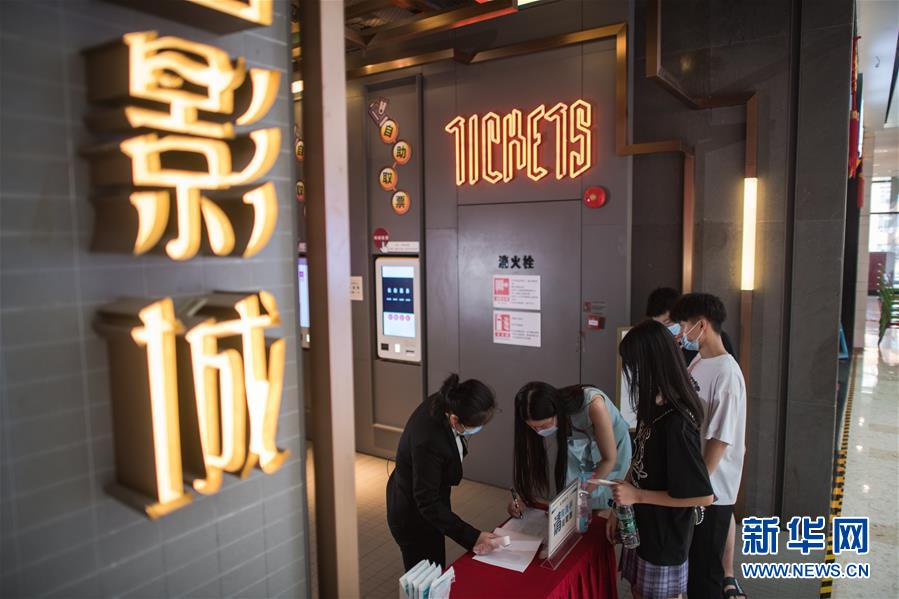7月20日,观众通过体温登记后进入武汉一家影院。 当日,在各项疫情防控措施有效落实到位的前提下,武汉市部分电影院恢复开放。 新华社记者 肖艺九 摄