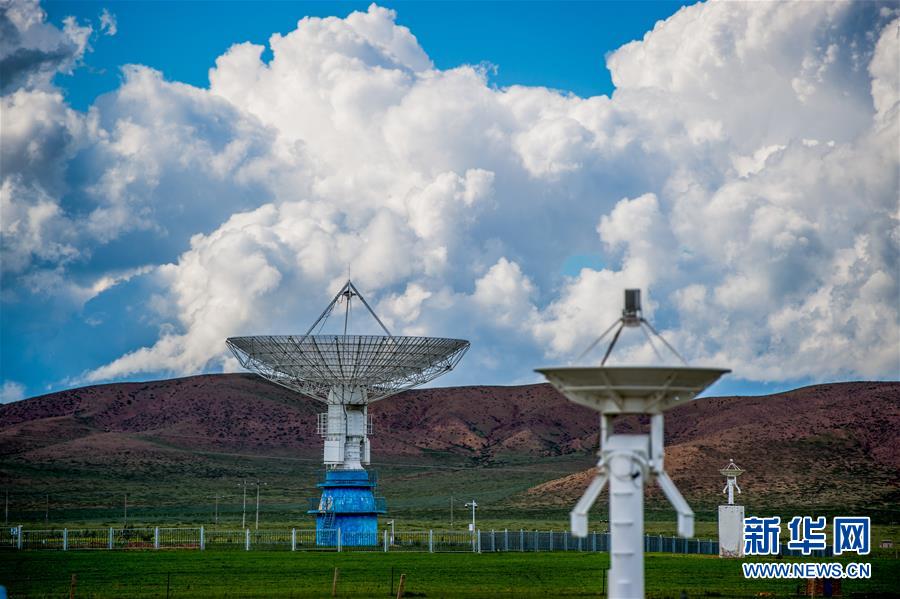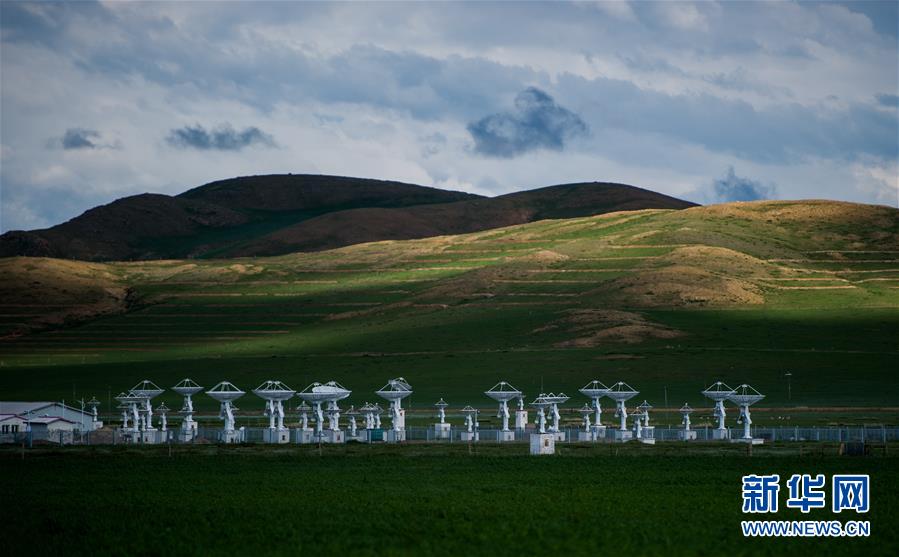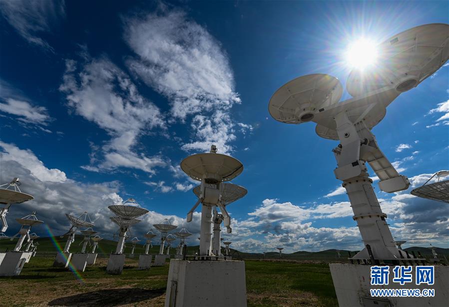 这是明安图观测基地中的射电频谱日像仪天线(7月18日摄)。新华社记者 连振 摄