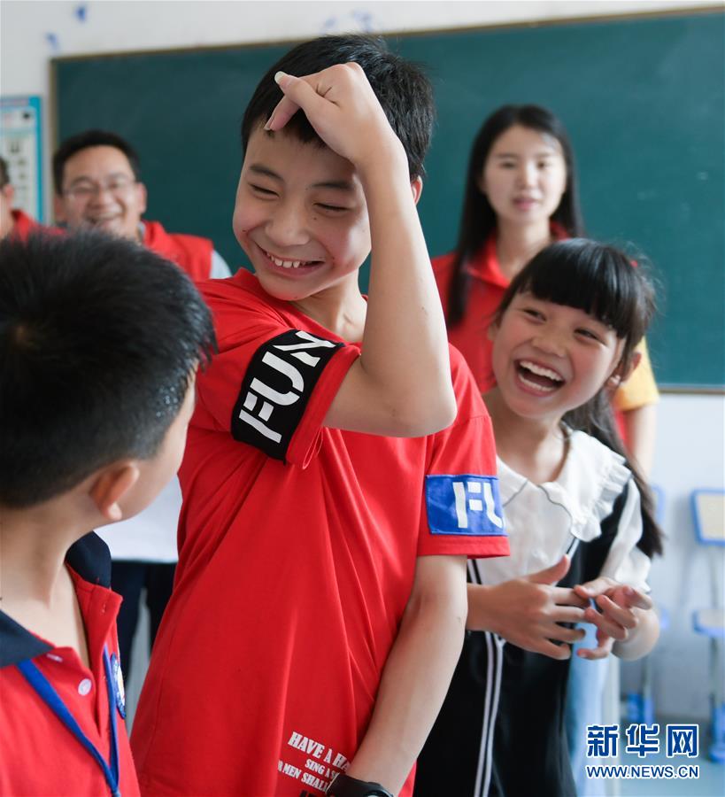 7月21日,在余姚市小曹娥镇的辛慧学校暑期乐园里,余姚市大城小爱公益服务中心的青年志愿者们在给孩子们上暑期安全课。 正值暑假,浙江省余姚市外来务工人员的子女们纷纷从家乡来到余姚与父母们团聚。为了解除家长们的后顾之忧并让来自异地的“小候鸟”们能拥有充实快乐的暑假生活,余姚市大城小爱公益服务中心的青年志愿者组织开展多期以“多彩暑期 快乐成长”为主题的暑期乐园活动,内容包括安排文化课程、书画兴趣课、趣味手工课等,同时还给“小候鸟”们准备了暑期清凉大礼包,让他们在异乡度过一个快乐的暑期。 新华社记者 徐昱 摄