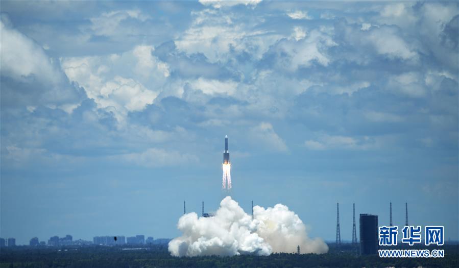 7月23日,长征五号遥四运载火箭在中国文昌航天发射场点火升空,实施我国首次火星探测任务(天问一号任务)。 新华社记者 赵颖全 摄