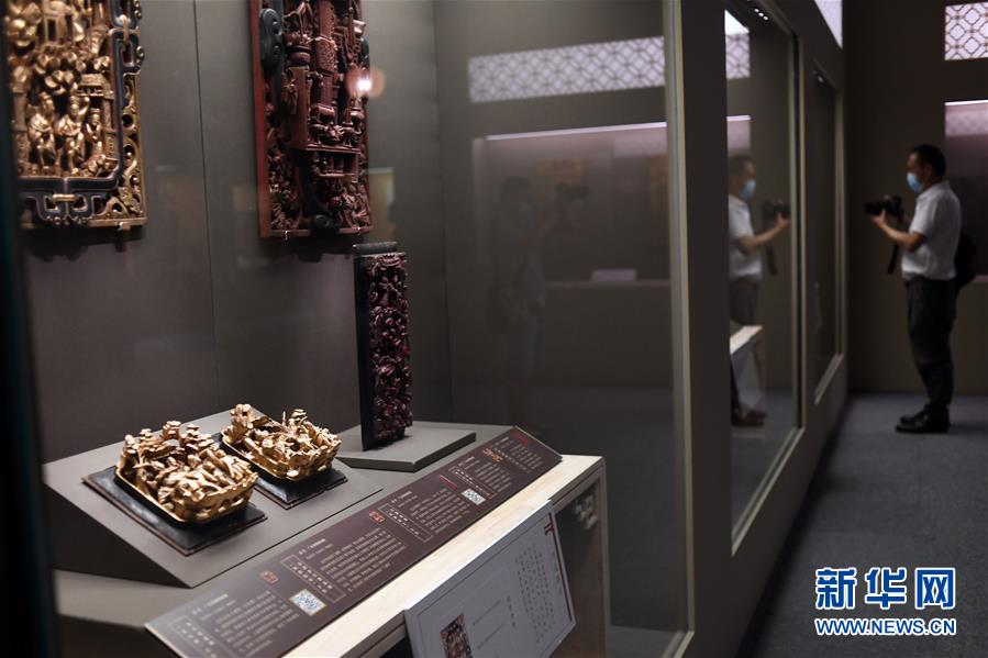 7月23日,一名参观者在北京中国国家博物馆观看潮州木雕展。 新华社记者 金良快 摄