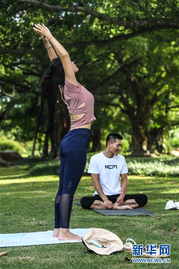 7月25日,市民在南湖公园练习瑜伽。新华社记者张爱林 摄