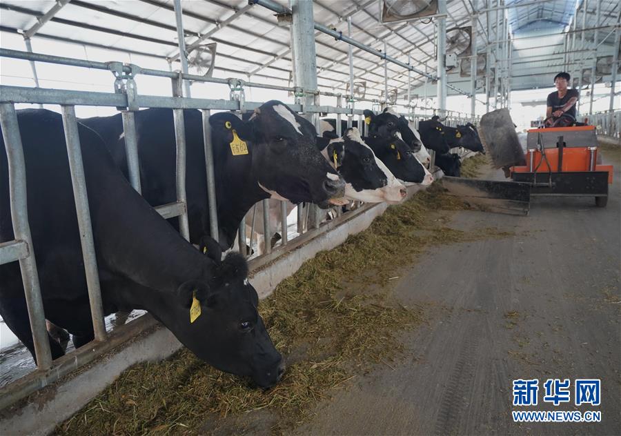 7月25日,唐山市丰南区南孙庄乡一家奶牛养殖厂的工人在奶牛棚工作。 河北省唐山市丰南区加快畜牧业结构调整,采取“公司+合作社+农户”的模式推动畜牧业标准化规模养殖,实现奶牛产业和肉牛产业高质量发展,带动群众增收,助力乡村振兴。据介绍,目前丰南区奶牛养殖达1.44万头,肉牛存栏达2.45万头,带动1200多农户增收。 新华社记者 杨世尧 摄