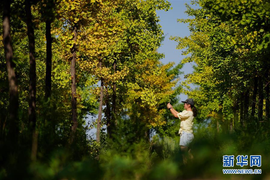 7月26日,游客在栾卸村银杏林中游览。 盛夏,位于太行山区的河北省沙河市栾卸村满目葱茏,山水、田园、民居构成一幅美丽乡村图景。 新华社记者 牟宇 摄