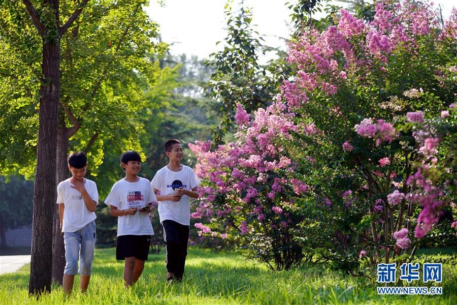 7月26日,村民在栾卸村一处花园游玩。 盛夏,位于太行山区的河北省沙河市栾卸村满目葱茏,山水、田园、民居构成一幅美丽乡村图景。 新华社记者 牟宇 摄