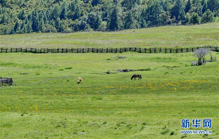 鲁朗旅游小镇的牧场(7月26日摄)。 新华社记者 张汝锋 摄