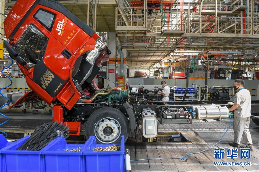 在位于长春的一汽解放总装车间,工人在装配车辆(6月19日摄)。 7月27日,国家统计局发布数据,6月份,全国规模以上工业企业实现利润总额6665.5亿元,同比增长11.5%,增速比5月份加快5.5个百分点。 新华社记者 张楠 摄