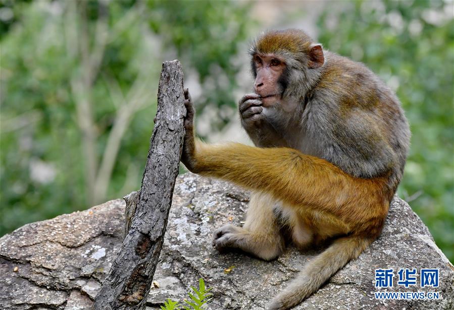 西藏山南达古峡谷风景区的藏猕猴(7月28日摄)。 达古峡谷位于西藏山南市,谷内有雅鲁藏布江大转弯,风景优美,气候宜人,是野生藏猕猴栖息地。 新华社记者 张汝锋 摄