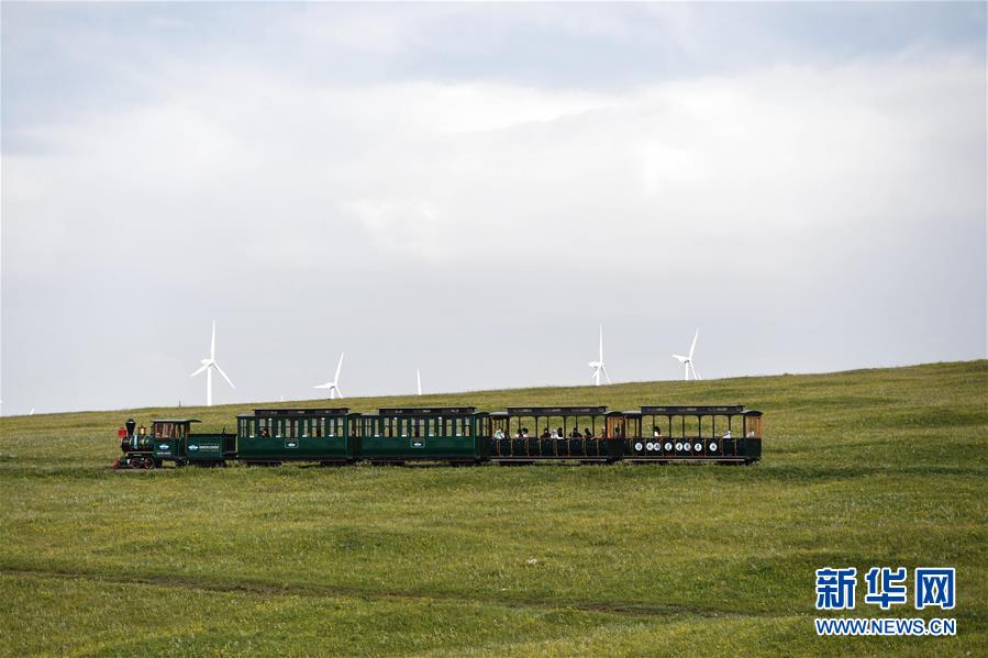 7月30日,游客在辉腾锡勒(黄花沟)草原旅游区乘坐观光火车。新华社记者 刘磊 摄 |