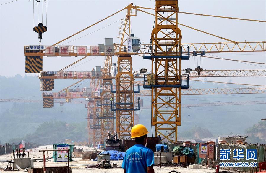 7月30日拍摄的济洛西高速黄河特大桥施工现场。 日前,河南济(济源)洛(洛阳)西高速黄河特大桥主体工程完工,进入最后的桥面铺设和桥梁护栏建设阶段。济洛西高速黄河特大桥是沟通洛阳与济源的重要通道,大桥设计全长1146.65米,预计2020年10月通车。 新华社记者 朱祥 摄