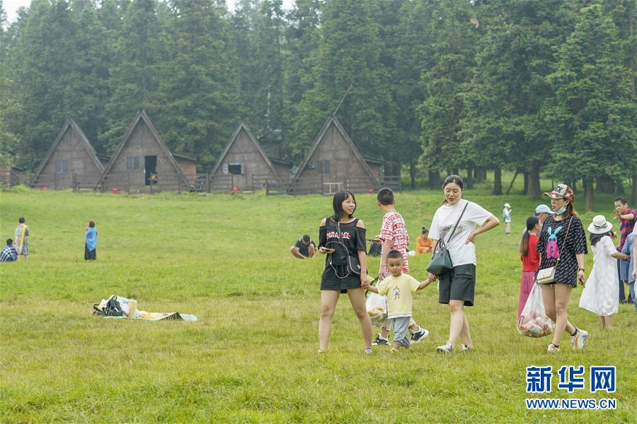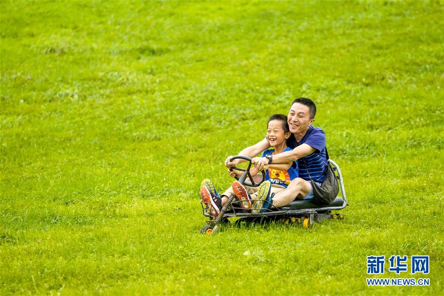 7月30日,在仙女山国家森林公园,人们在玩“滑草”。新华社记者 刘潺 摄
