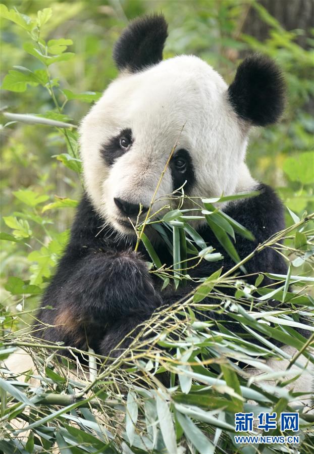 北京动物园的熊猫在乘凉吃竹子(7月30日摄)。 炎炎夏日,北京动物园根据动物生活习性,为动物配备了自动喷淋喷雾、空调笼舍、恒温水池、遮阳棚等各类避暑设施,同时还准备了西瓜等降温食品,保障动物平安舒适地度过伏天。 新华社记者李欣摄