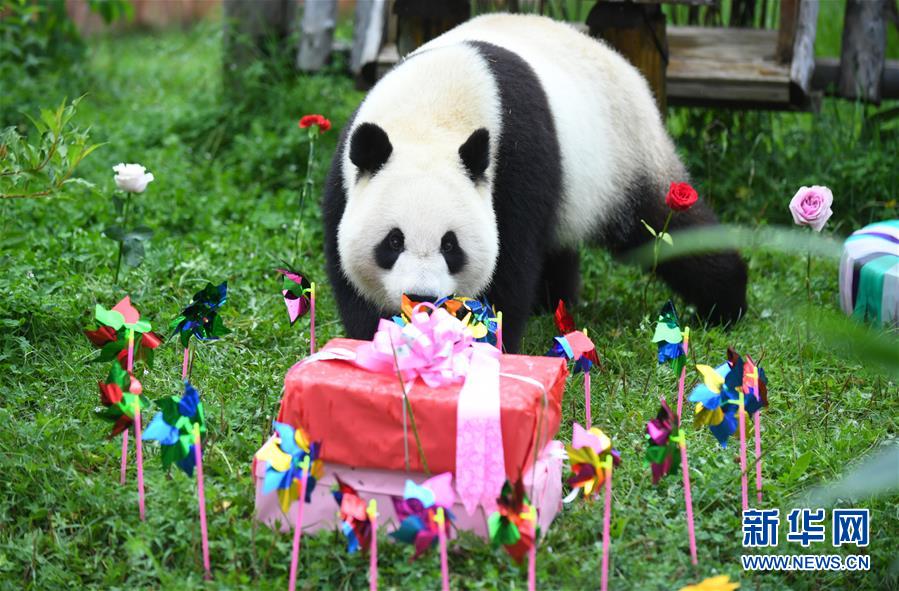 7月30日,大熊猫“初心”准备享用生日礼物。 当日,吉林省东北虎园熊猫馆为大熊猫“初心”和“牧云”举行4周岁生日庆祝活动,饲养员精心准备了水果、竹子等丰盛美食,为“初心”“牧云”送上祝福。 新华社记者 林宏 摄