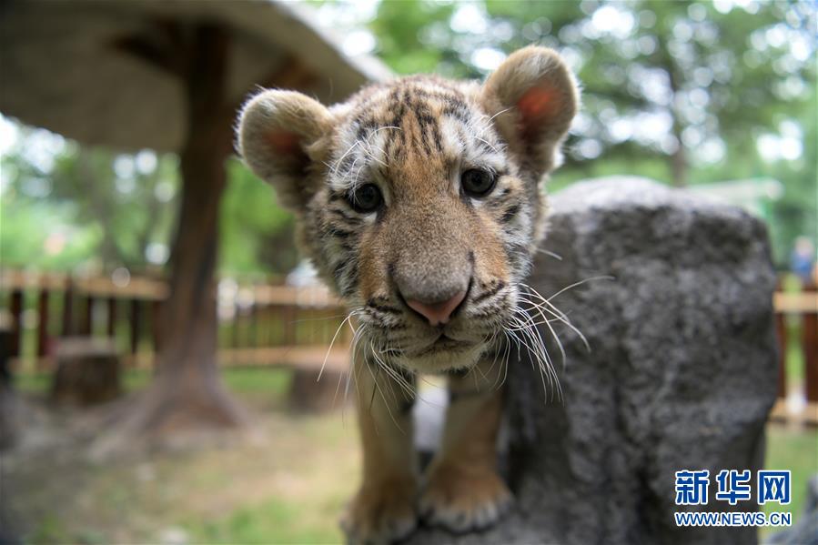 7月29日,在横道河子东北虎林园的东北虎“幼儿园”,一只虎宝在好奇地张望。 当日是“全球老虎日”。一些游客来到位于黑龙江省海林市的横道河子东北虎林园,领略山林之王的威武。新华社记者 王建威 摄
