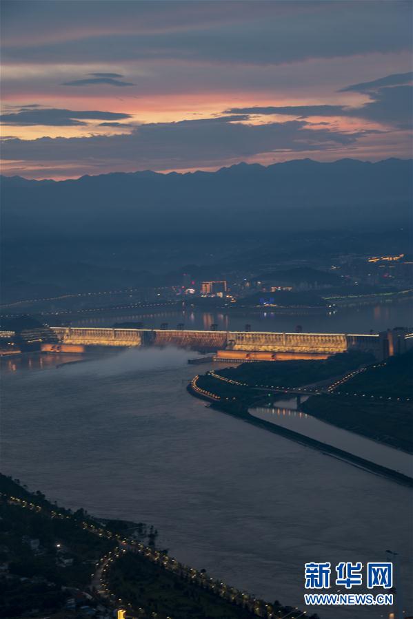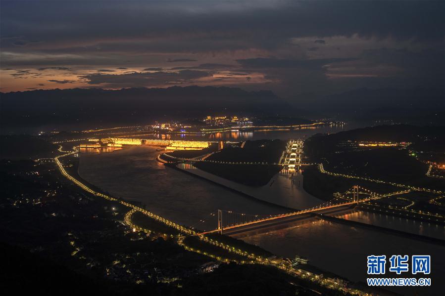 8月1日拍摄的三峡工程夜色。 入夜,三峡工程景观灯开放,整个景区更加壮丽多彩。 新华社记者 杜华举 摄