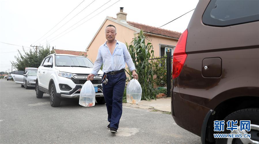 8月4日,一位买鱼的客人从张忠堡村村民孙福春的家门走出。新华社记者 姚剑锋 摄