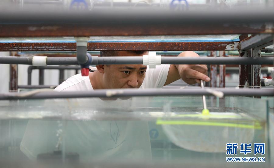 8月4日,张忠堡村村民李国鹏在观赏鱼养殖缸里分拣鱼苗。 新华社记者 姚剑锋 摄