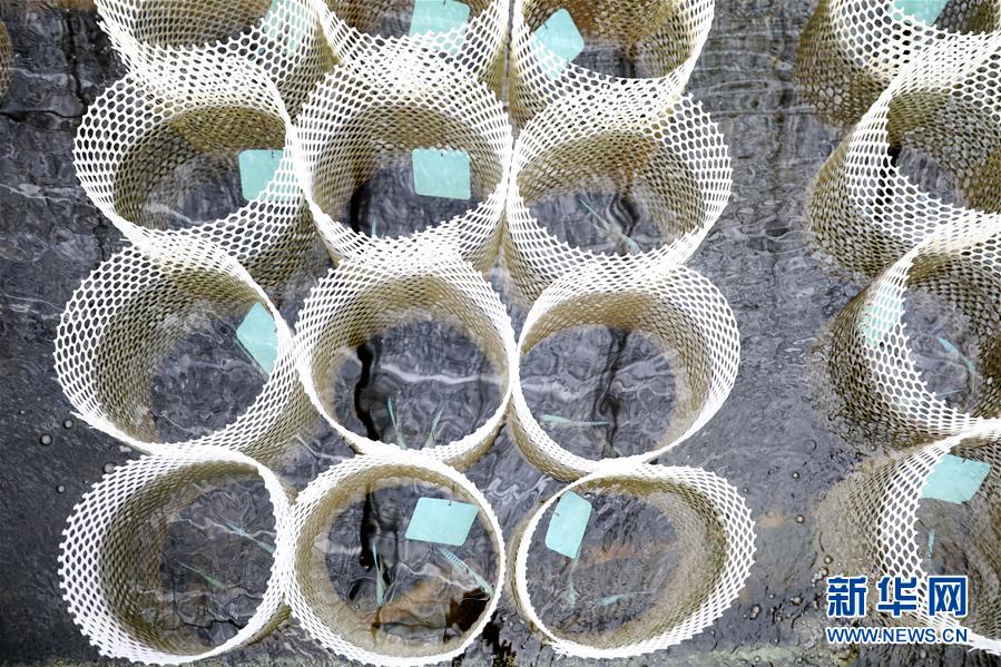 这是张忠堡村村民李国鹏养殖池里的观赏鱼育种筐(8月4日摄)。 新华社记者 姚剑锋 摄