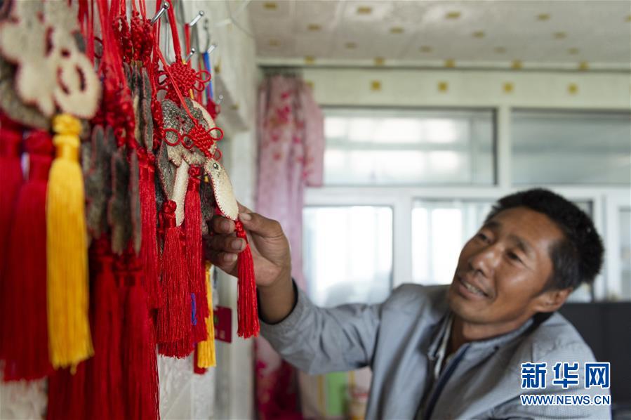 8月6日,在黑龙江省抚远市鸭南乡鸭南村的家中,李春喜在制作鱼皮挂件。 出生于1971年的李春喜是黑龙江省抚远市鸭南乡鸭南村村民。3岁那年,李春喜因意外左腿截肢。2013年父亲去世时,家里没家底、没积蓄,还欠下了3万多元外债,弟弟是聋哑人,母亲患有脑梗瘫痪在炕上,只能靠政府救济和弟弟在农忙时给人铲地、插秧赚些钱补贴家用。 2016年,抚远市继续深入推进精准扶贫,李春喜家除了享受到光伏发电、边民互市贸易等共享产业扶贫政策,帮扶人董丽娟还带着鱼皮技艺老师上门授课。这一年,李春喜成功脱贫。 2018年,李春喜在社交网站注册了账号,认识了现在的女朋友梁红。同年,李春喜参加了抚远市的脱贫攻坚表彰大会,作为脱贫致富模范户代表戴着大红花上台发言。 赫哲族鱼皮技艺历史悠久,被列入国家级非物质文化遗产名录,抚远市的鱼皮画、鱼皮挂件等特色旅游产品颇受市场青睐。李春喜手巧又好学,随着不断学习其作品也越来越精致。2019年,李春喜靠着自己制作的鱼皮手工艺品增收3000余元。 今年,李春喜家重新装贴了墙纸,还新添了一个大衣柜。李春喜说,虽然只有一条腿,但在脱贫致富的路上自己没掉队,他对未来的生活充满了信心。 新华社记者 谢剑飞 摄