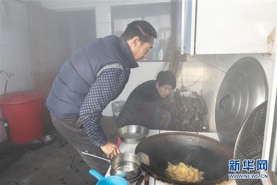 在黑龙江省抚远市鸭南乡鸭南村的家中,李春喜和梁红(右)在做饭(2019年12月29日摄)。新华社记者 谢剑飞 摄