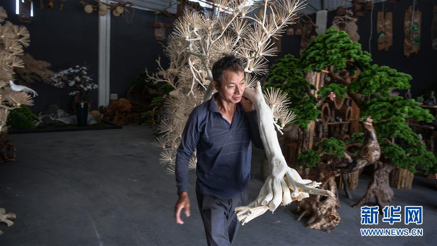 8月7日,一名工人在永福县永安乡根雕工艺品就业扶贫车间搬运根雕半成品。 2017年以来,广西桂林市永福县永安乡通过帮扶返乡青年创业的方式,建立起根雕工艺品就业扶贫车间,组织贫困群众进车间务工学艺,把当地丰富的朽木和柑橘树根枝资源利用起来,加工成盆景、茶桌、吊灯等根雕工艺品,不仅帮助贫困群众在家门口掌握一技之长,还让他们在脱贫摘帽后实现稳定增收。 新华社记者 张爱林 摄