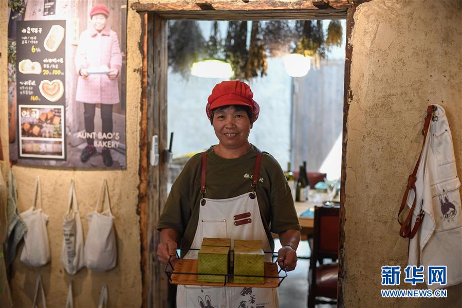 在浙江省丽水市松阳县四都乡平田村一家面包坊,村民鲍阿姨展示刚出炉的吐司面包(7月17日摄)。 新华社记者 黄宗治 摄