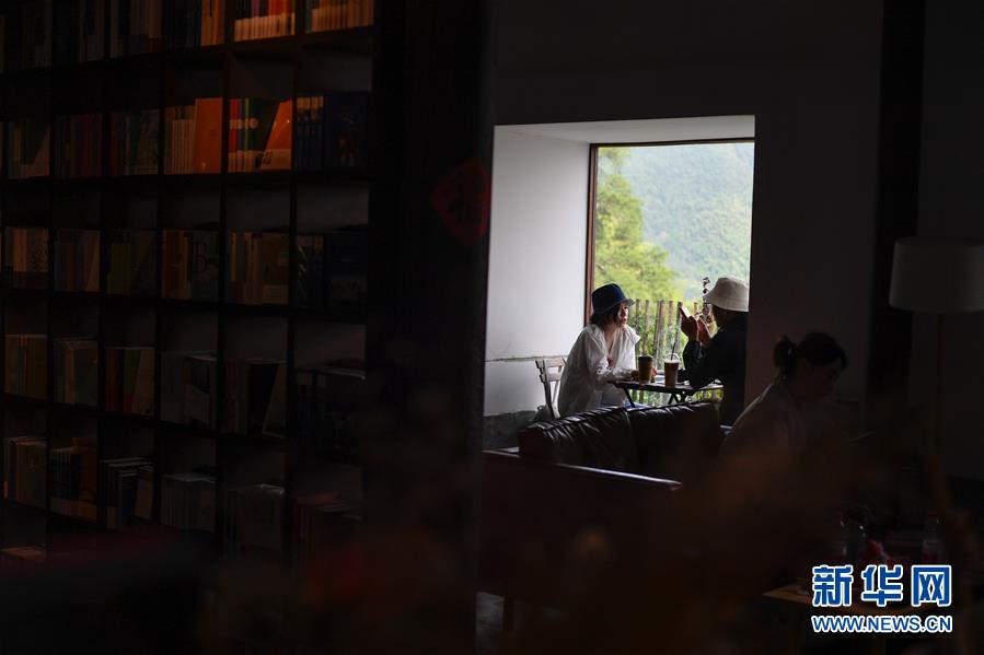 游客在浙江省丽水市松阳县四都乡陈家铺村的先锋书店平民书局休闲(7月17日摄)。 新华社记者 黄宗治 摄