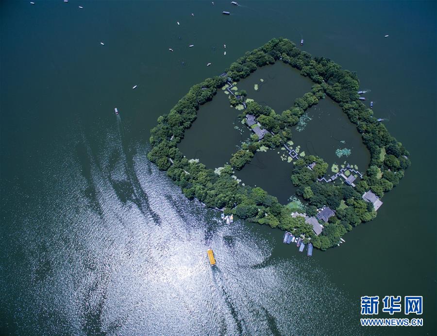 空中俯瞰夏日西湖(2018年7月15日摄,无人机照片)。 新华社记者 徐昱 摄
