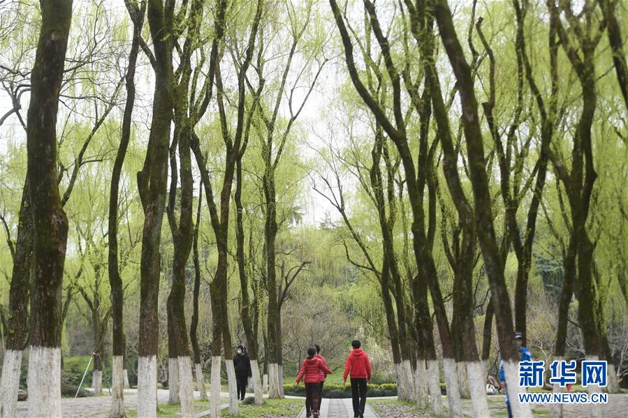 游人在杭州西湖景区柳浪闻莺公园内游览(3月12日摄)。 新华社记者 黄宗治 摄