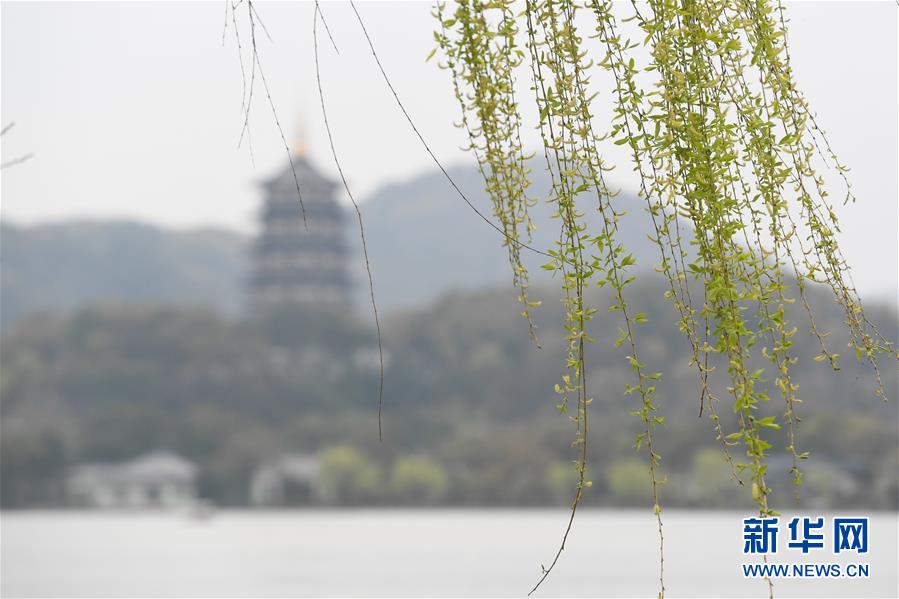 杭州西湖边发出新芽的柳树(3月12日摄)。 新华社记者 黄宗治 摄
