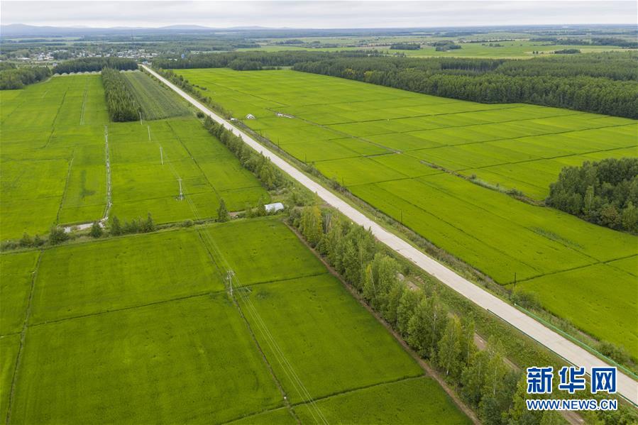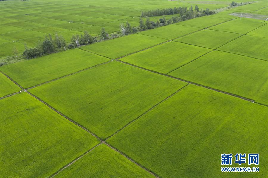 8月11日在抚远市拍摄的稻田(无人机照片)。 时下,“华夏东极”黑龙江省抚远市的水稻长势良好,苍翠的稻田一望无际,犹如绿毯铺在大地上。 新华社记者 谢剑飞 摄