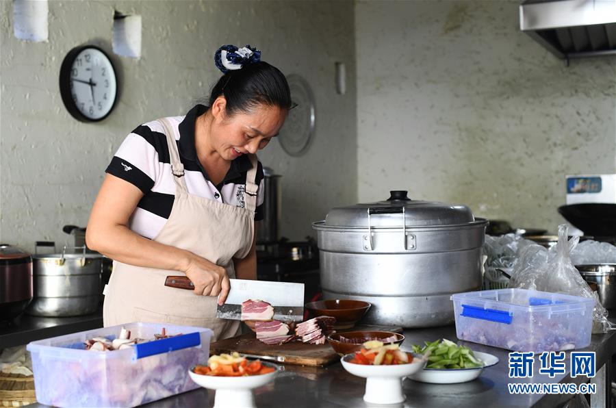 白龙村一农家乐工作人员在厨房准备食材(7月27日摄)。 新华社记者 王全超 摄