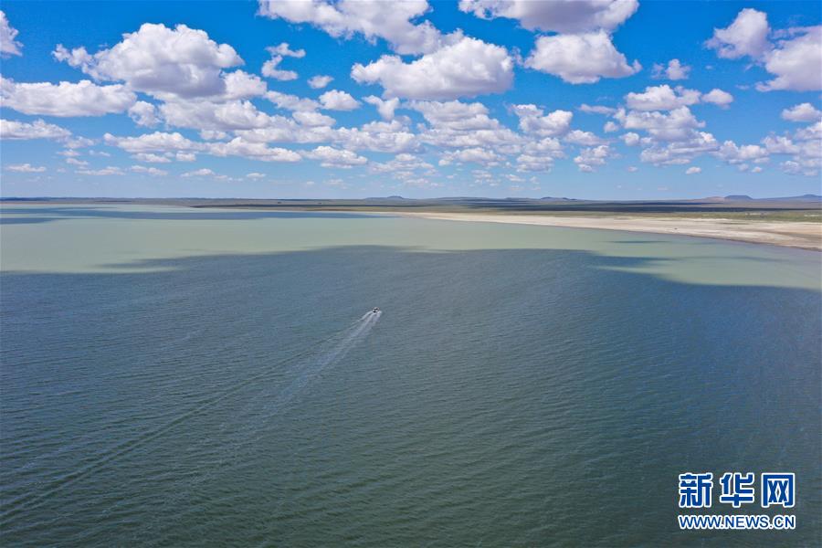 8月11日,游客在克什克腾旗达里诺尔湖乘坐快艇游玩(无人机照片)。 克什克腾旗位于内蒙古自治区赤峰市西北部,境内的湖泊、河流、草原、森林等自然景观,让人们流连忘返。 新华社记者 徐钦 摄 |