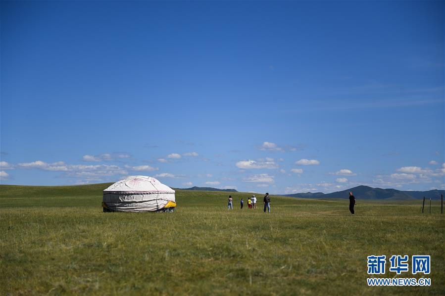 游客在克什克腾旗贡格尔草原上游玩(8月11日摄)。 克什克腾旗位于内蒙古自治区赤峰市西北部,境内的湖泊、河流、草原、森林等自然景观,让人们流连忘返。 新华社记者 刘磊 摄