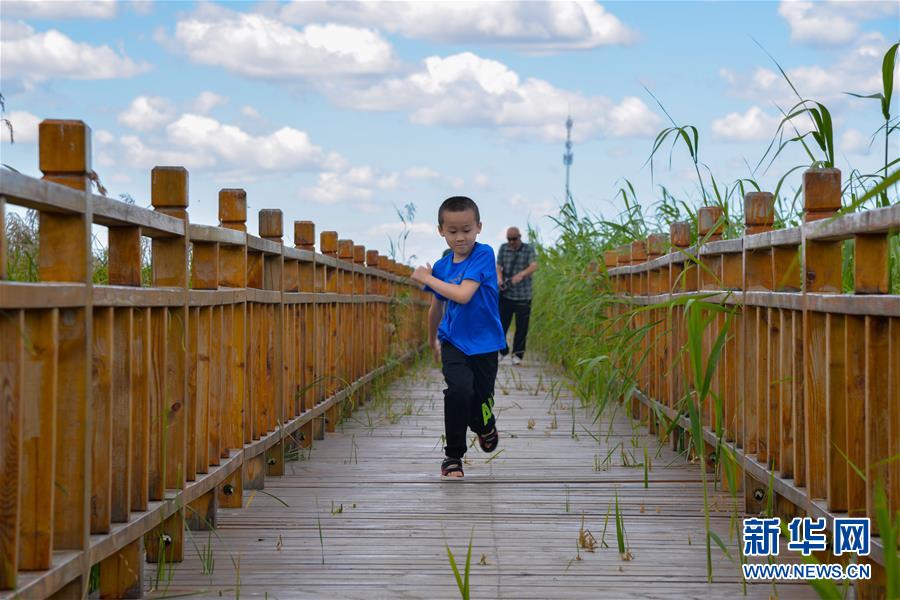 8月11日,游客在克什克腾旗达里诺尔湖北岸景区游玩。 克什克腾旗位于内蒙古自治区赤峰市西北部,境内的湖泊、河流、草原、森林等自然景观,让人们流连忘返。 新华社记者 徐钦 摄