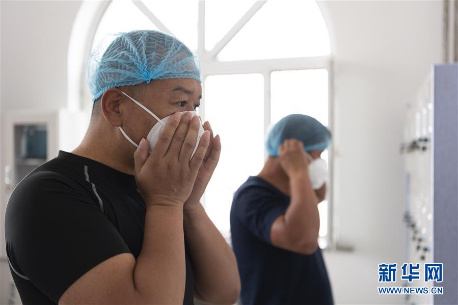 8月13日,在黑龙江抚远口岸货检现场联检办公楼,工作人员穿戴防护装备。 新华社记者 谢剑飞 摄